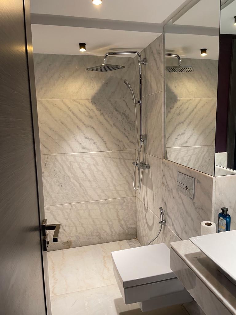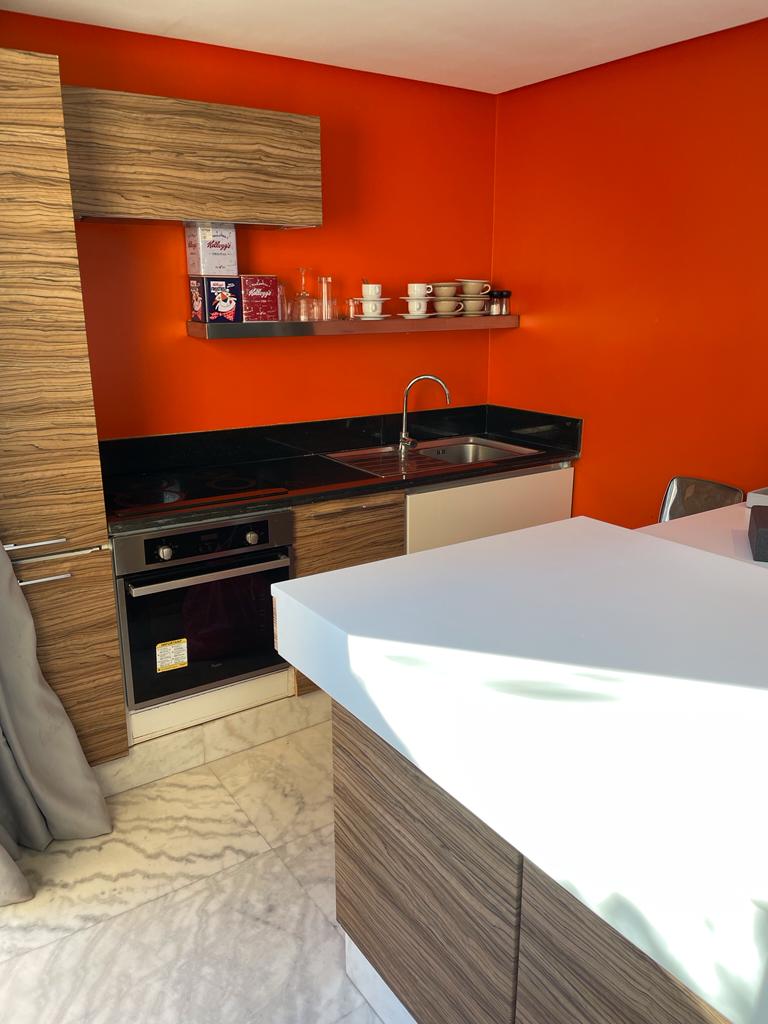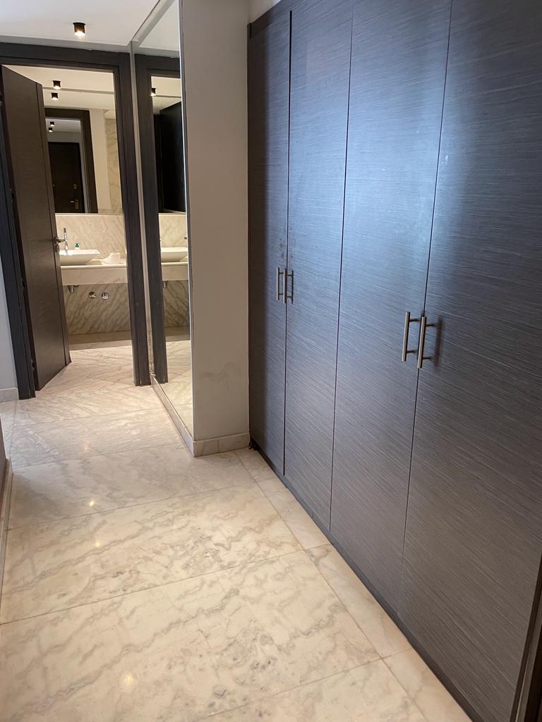 Cet appartement prestigieux comprend deux suites très lumineuses et moderne décoré avec une étincelle de couleurs, avec des sols en marbre, ainsi trois salles de bain.