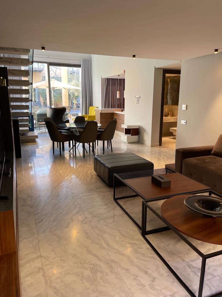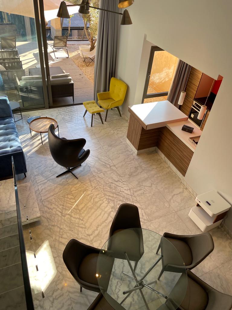Dans un complexe résidentiel luxueux sur la route de Ouarzazate, se trouve ce Loft d’une superficie habitable de 145 m2 .