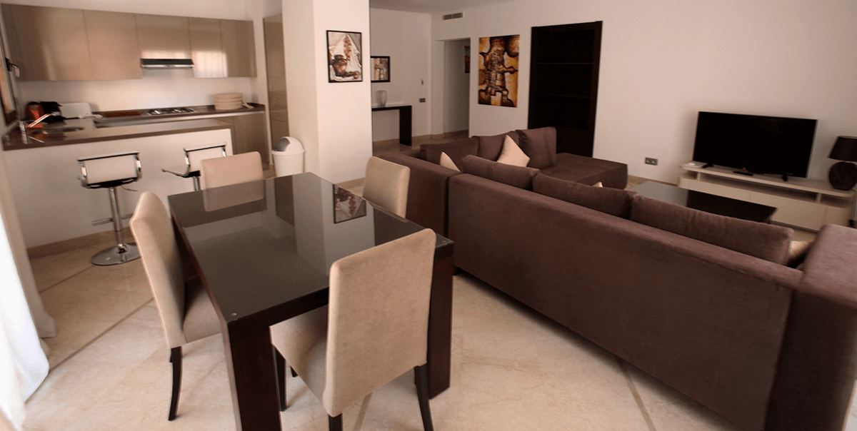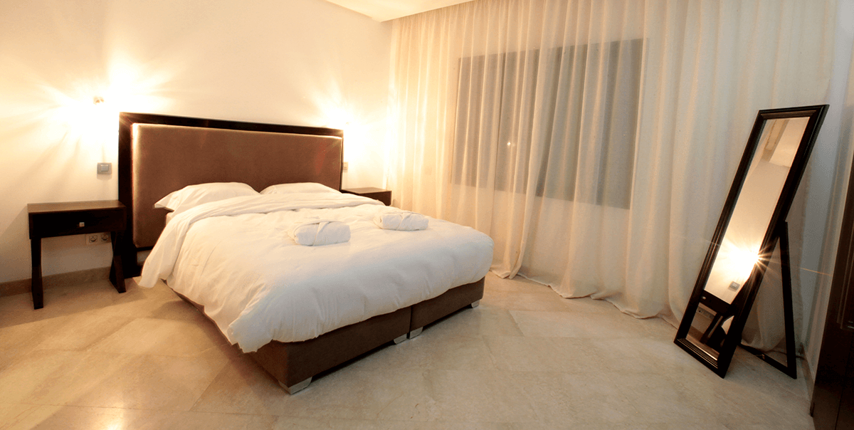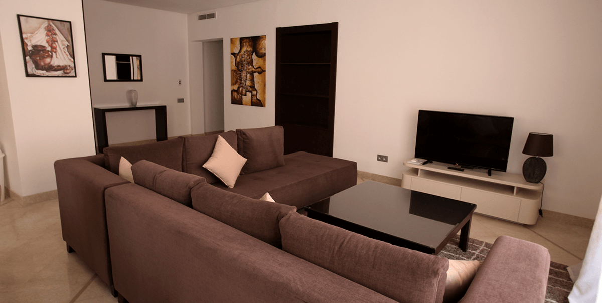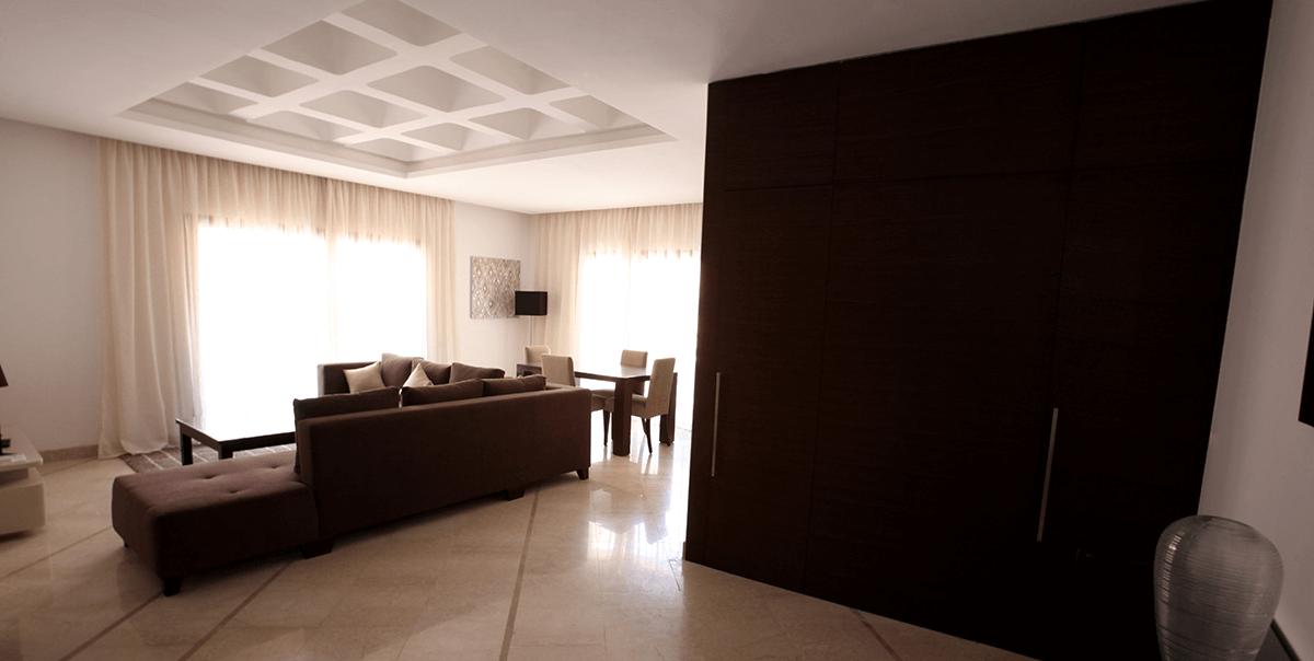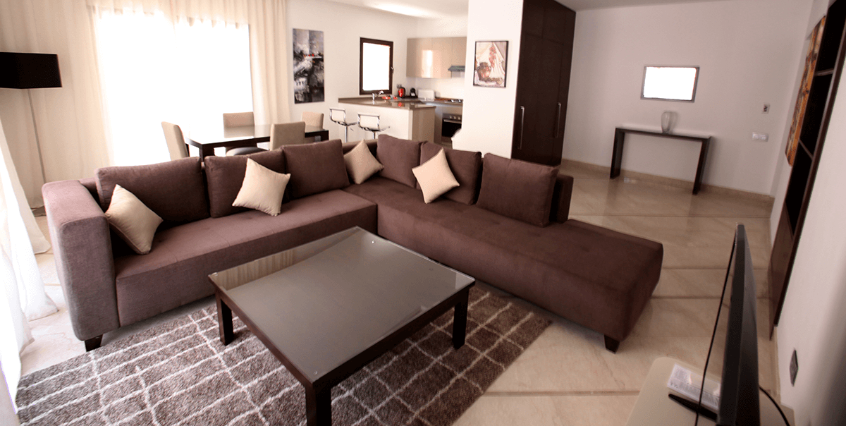 Ab Development Marrakech vous propose à la location longue durée , un superbe appartement meublé contemporain d’une chambre salon très spacieux au 2ème étage d’une résidence sécurisée 24h/24.