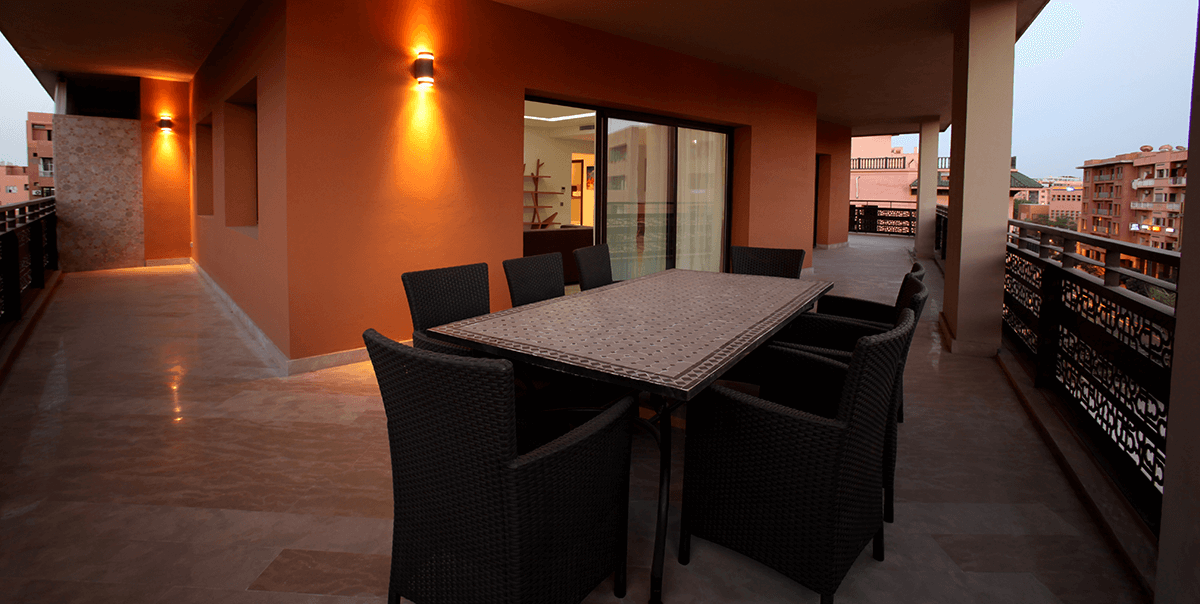 Le grand plus de cet appartement est la terrasse spectaculaire qui surplombe tout le Guéliz.
