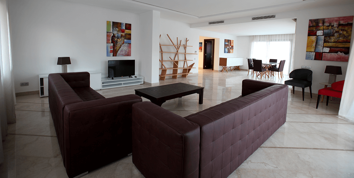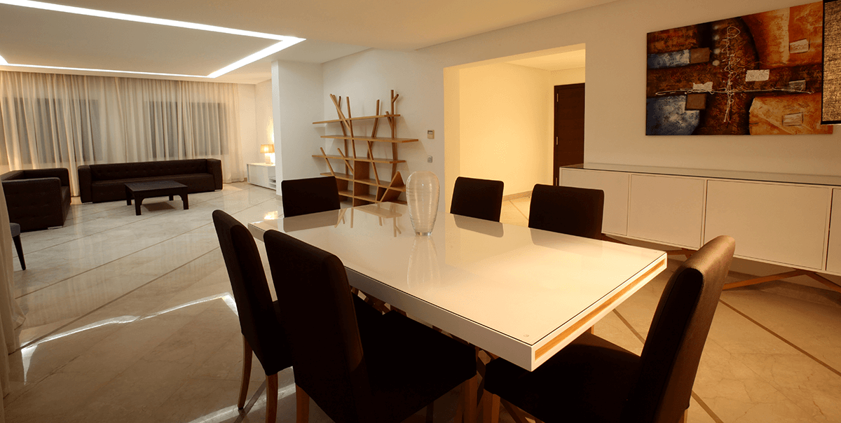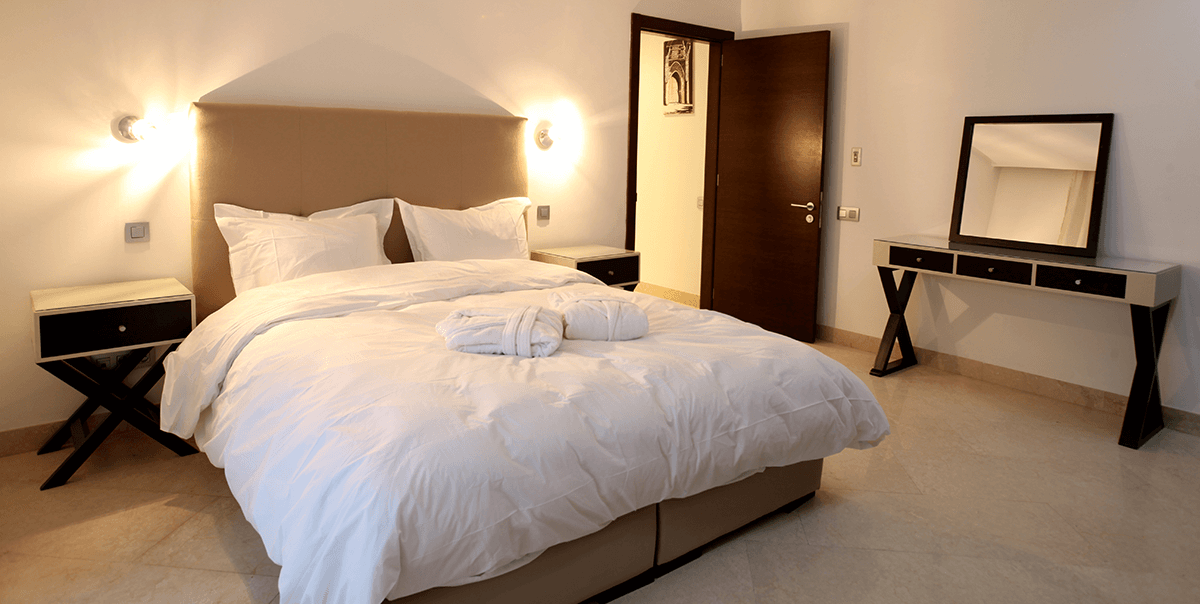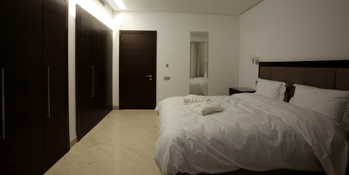 Ab Development Marrakech vous propose à la location longue durée , un Grand appartement d’une superficie de 256 m2 ,contemporain de deux chambres salon au 4ème étage d’une résidence sécurisée 24h/24.
