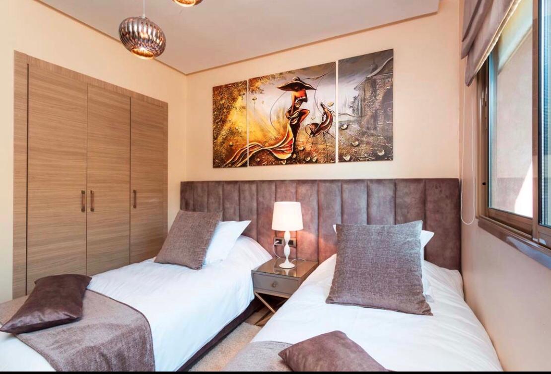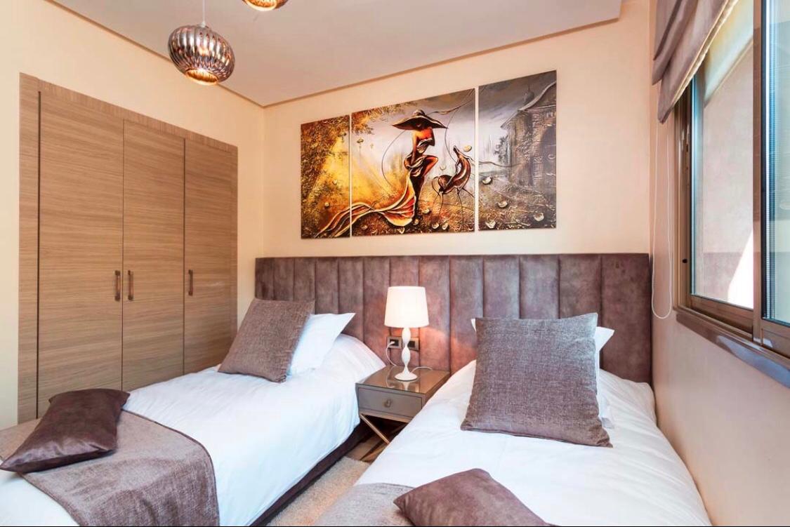 L’appartement Abir se compose de 2 chambres, salon, salle à manger au Rez de chaussé avec jardin privé et piscine à moins de 5 mètres.