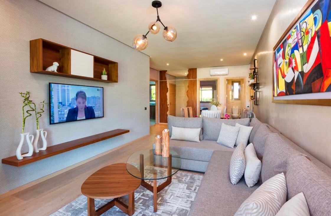 Ab Development Marrakech vous propose cet agréable appartement meublé, tout neuf, à la location longue durée à Prestigia golf City Marrakech. Il est d’une superficie de 200 m².