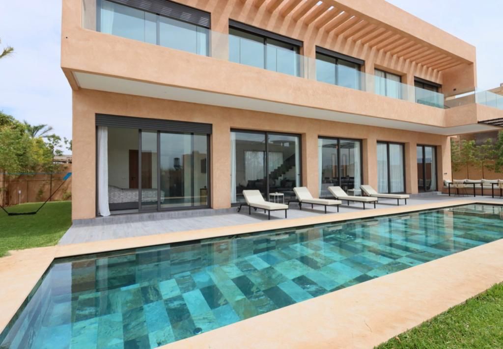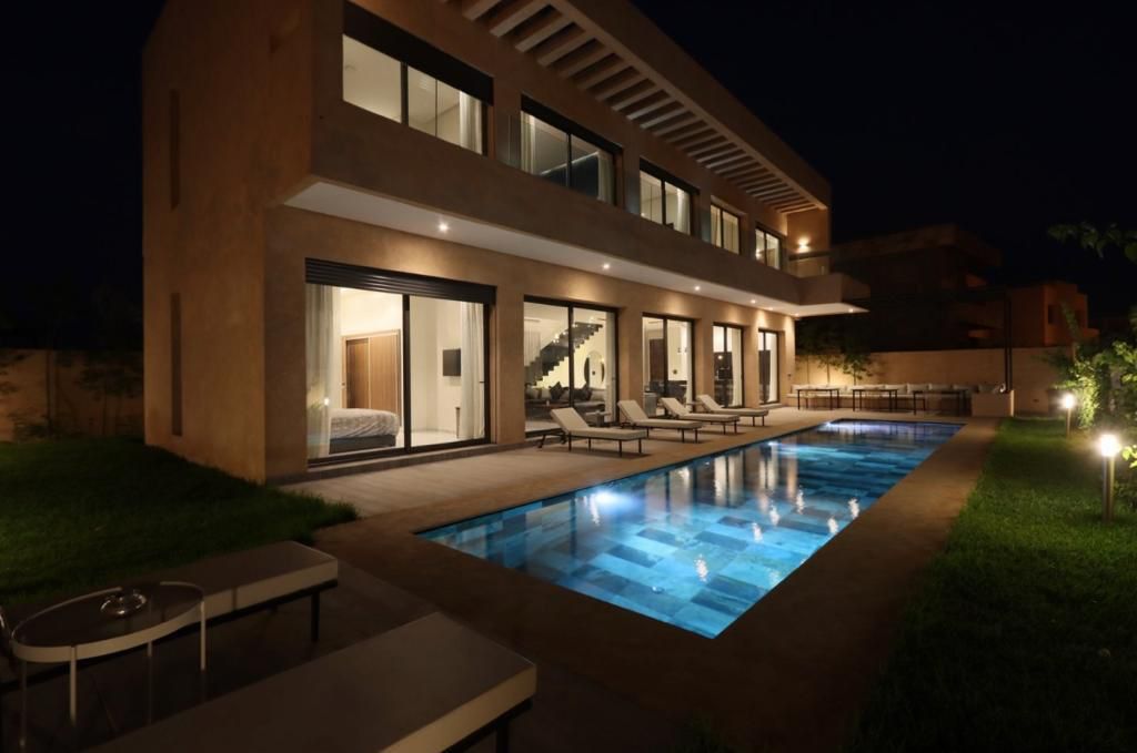 Ab Development Marrakech vous propose à la location cette Villa d’architecte sur golf d’Amelkis avec une vue sur l’atlas, à 20 minutes de Guéliz et 10 minutes de la médina.
