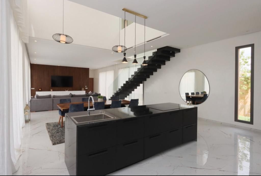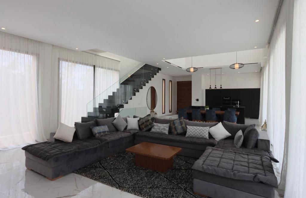 L’édifice, qui combine un design moderne avec des espaces ouverts, sains et lumineux, est conçue pour profiter à la fois de ses espaces intérieurs et extérieurs. La villa a été construite avec des matériaux de haute qualité et des finitions de haut standing.