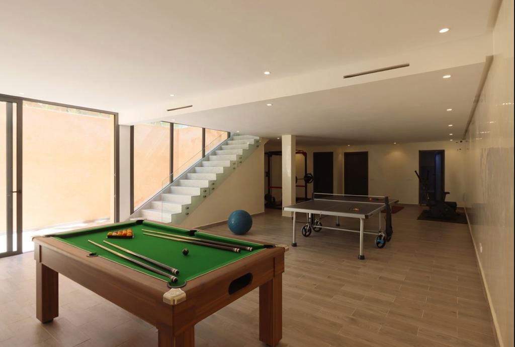 Le sous-sol est dédié au bien être et la detente avec un Hammam, matériel fitness , tennis de table, billard et salle de bain.