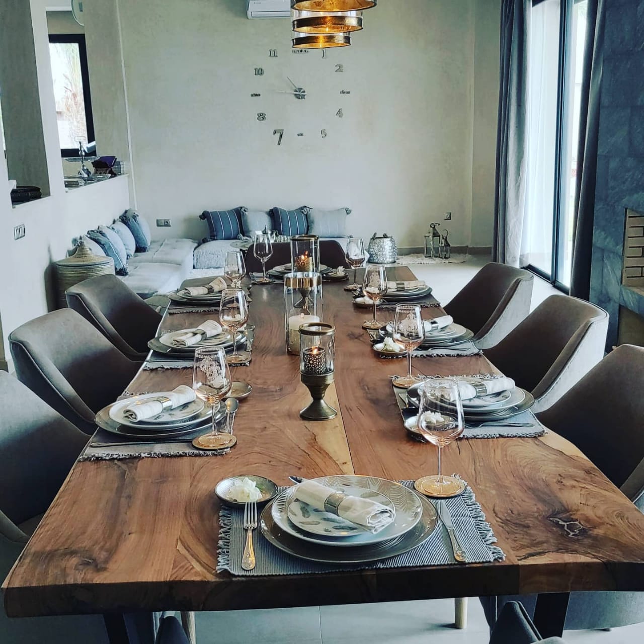 – Une grande réception avec deux coins cheminée