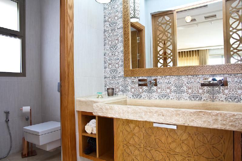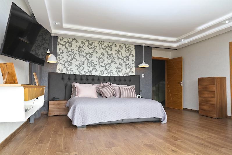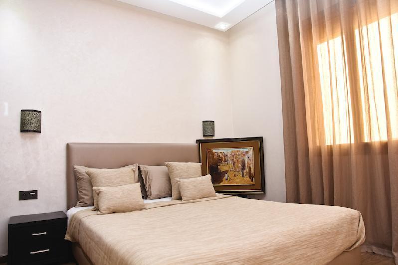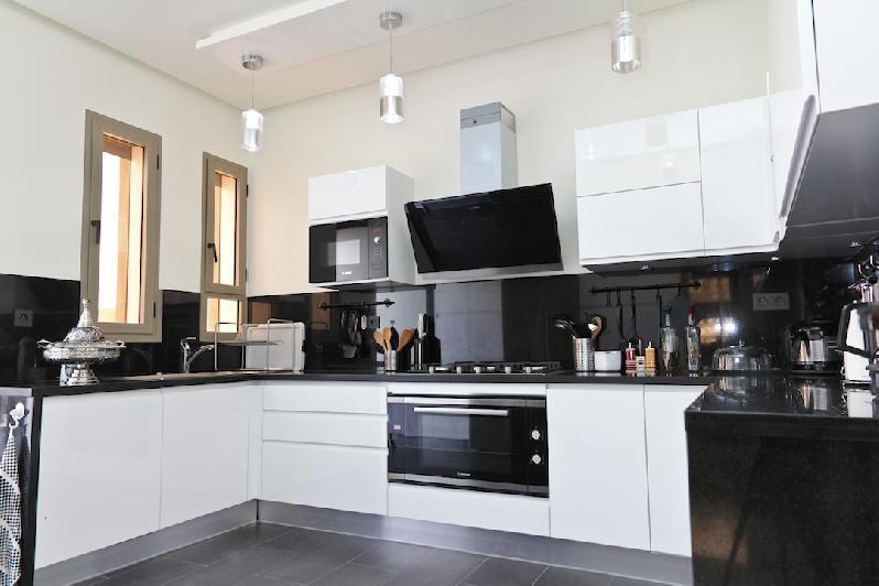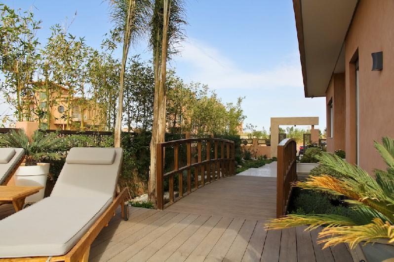 La villa comprend un très beau jardin avec une piscine privative qui donne vue sur le golf, un salon moderne, salon marocain, séjour avec cheminée, 6 chambres dont une suite parentale avec sa salle de bain privative, 2 salles de bain, cuisine entièrement équipée, une salle de sport, un hammam et une terrasse avec magnifique vue sur le golf et les montagnes de l’Atlas.