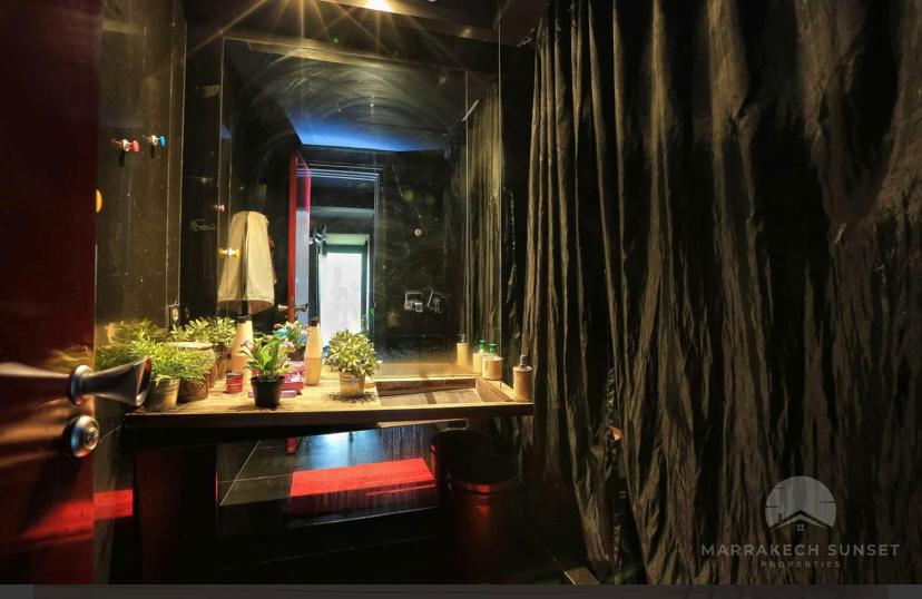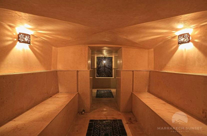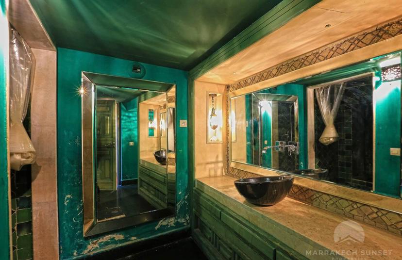 La  façade de la maison comprend les plus belles œuvres d’art – et une entrée avec des lacs latéraux. Le sous-sol comprend une douche et une salle de bain, hammam traditionnel qui peut accueillir 2 personnes très confortablement, une salle de détente, un salon marocain traditionnel, une chambre avec sa propre douche et salle de bain privée, buanderie et salle de stockage.