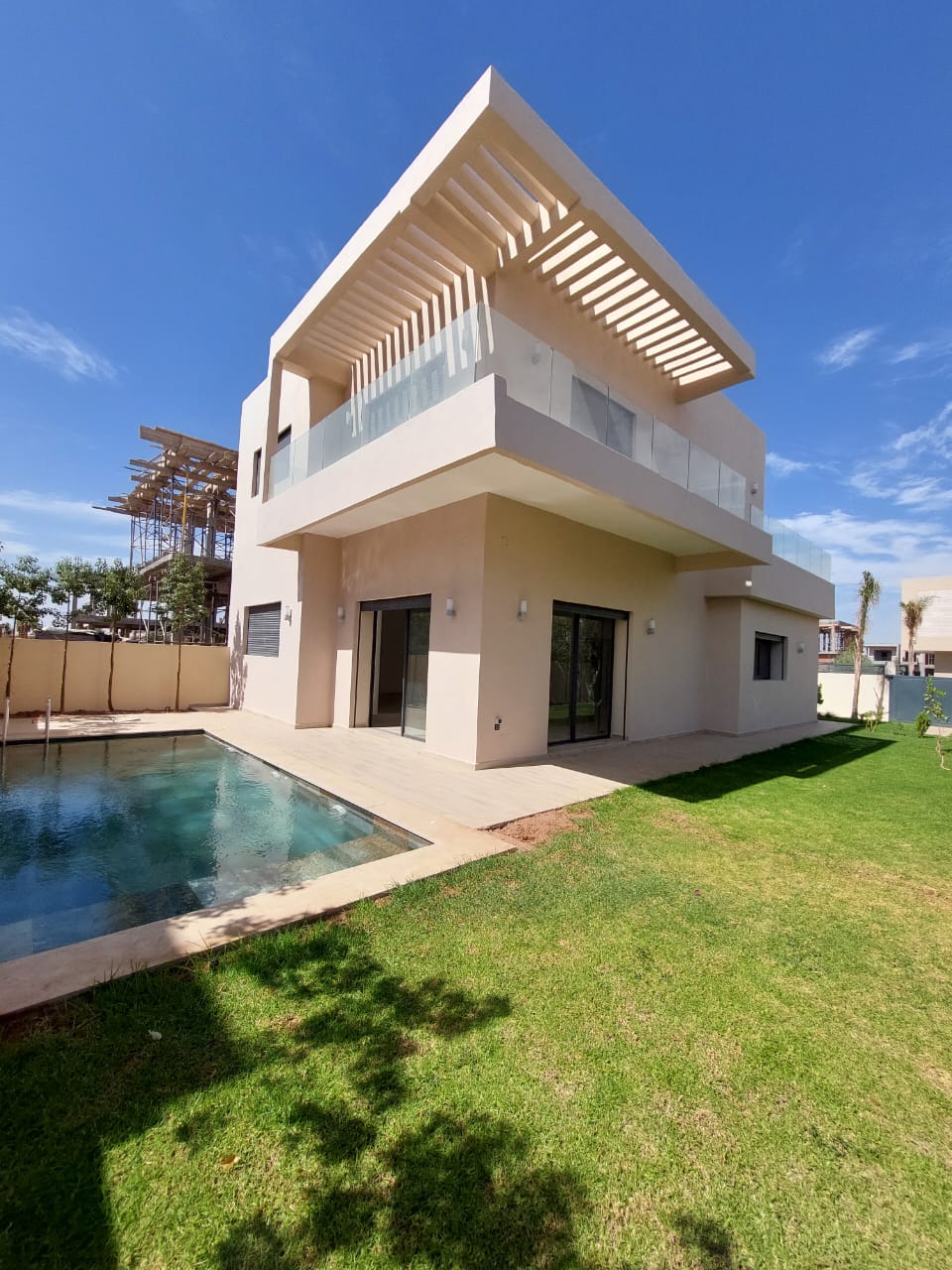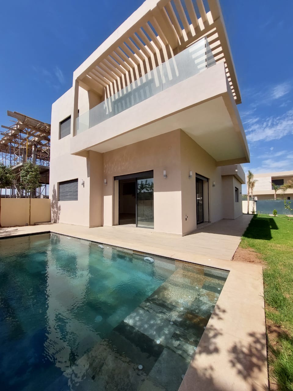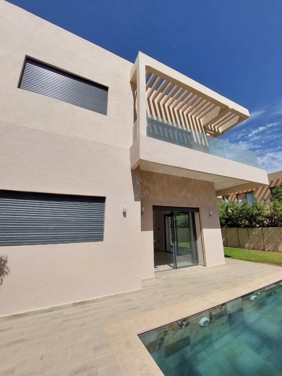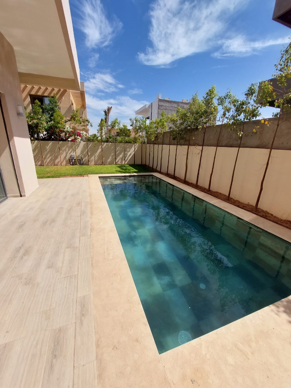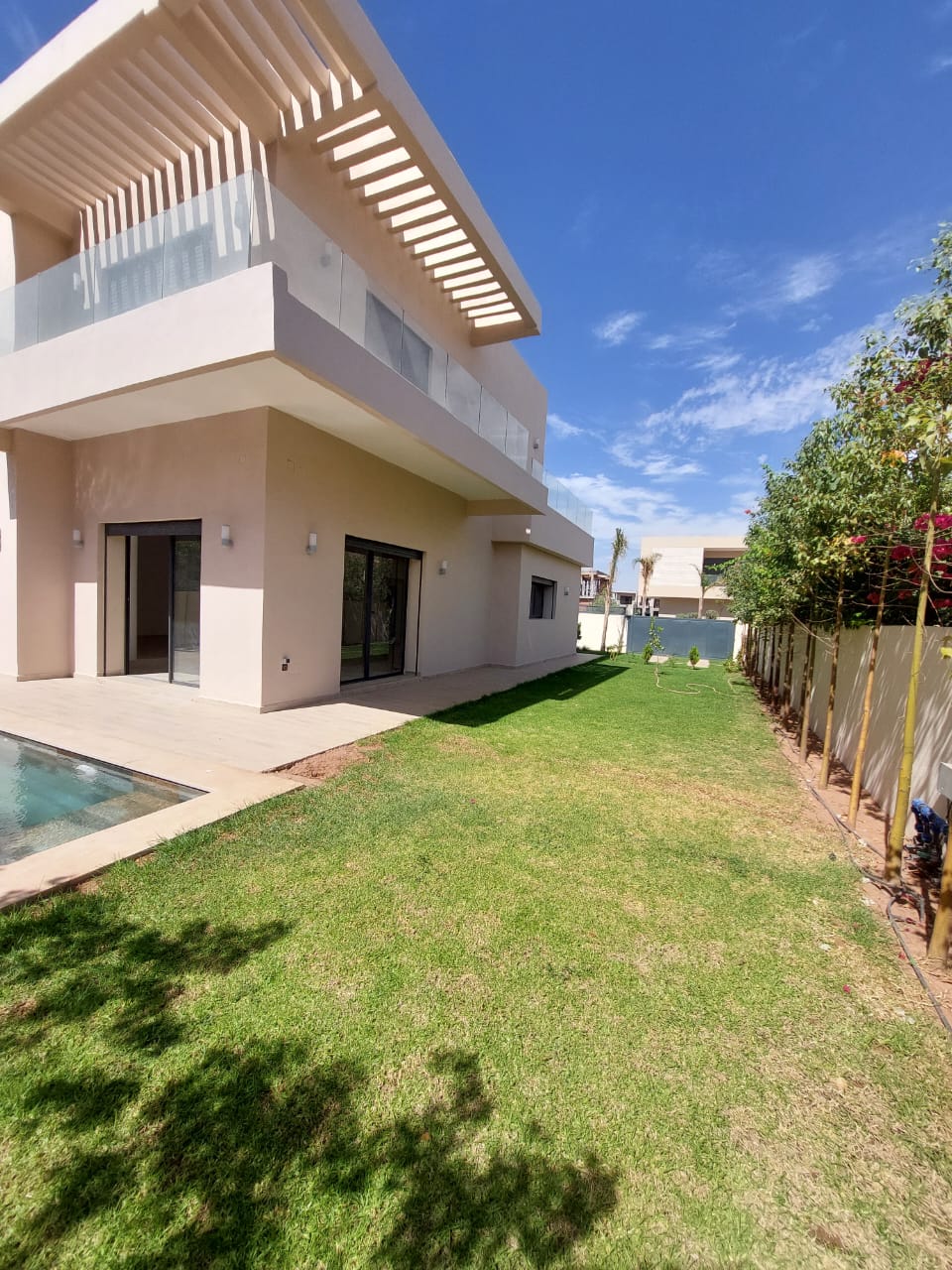 La villa offre : 3 façades, climatisation, piscine, jardin avec arrosage automatique.