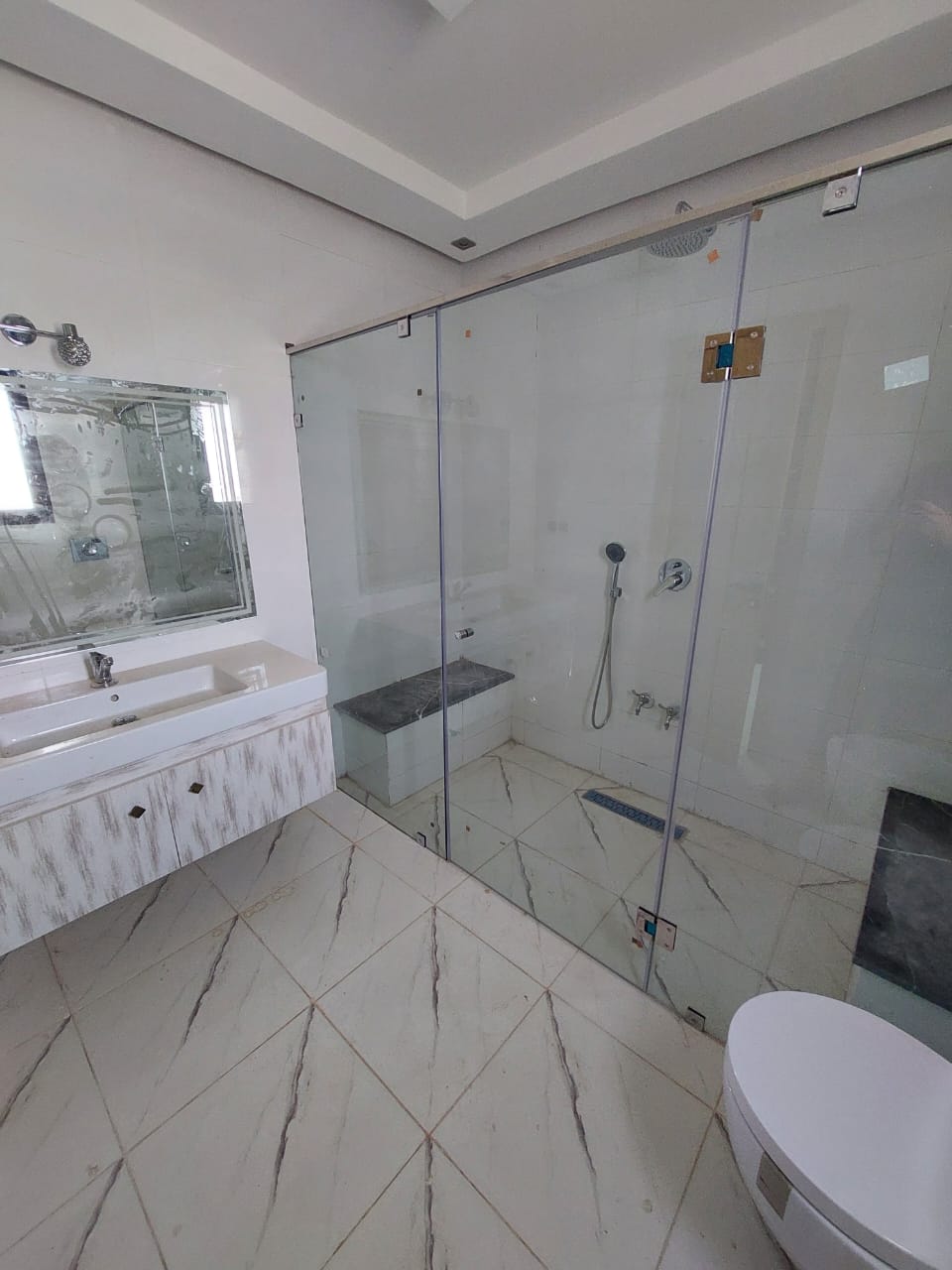 Cette sublime villa comprend 4 chambres, un grand salon, une cuisine américaine ouverte avec frigidaire, dressing, WC invité, deux salle de bain avec douche.