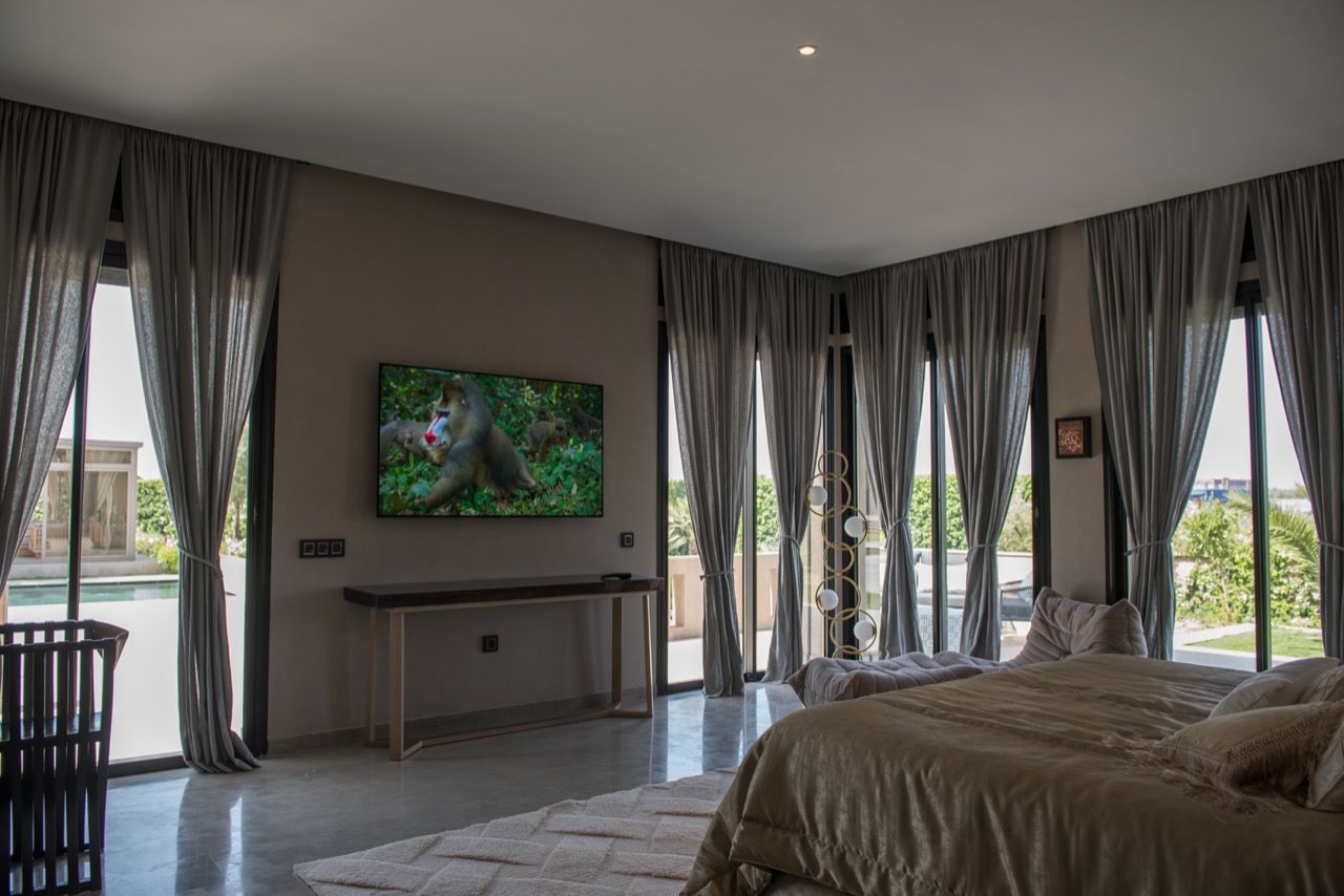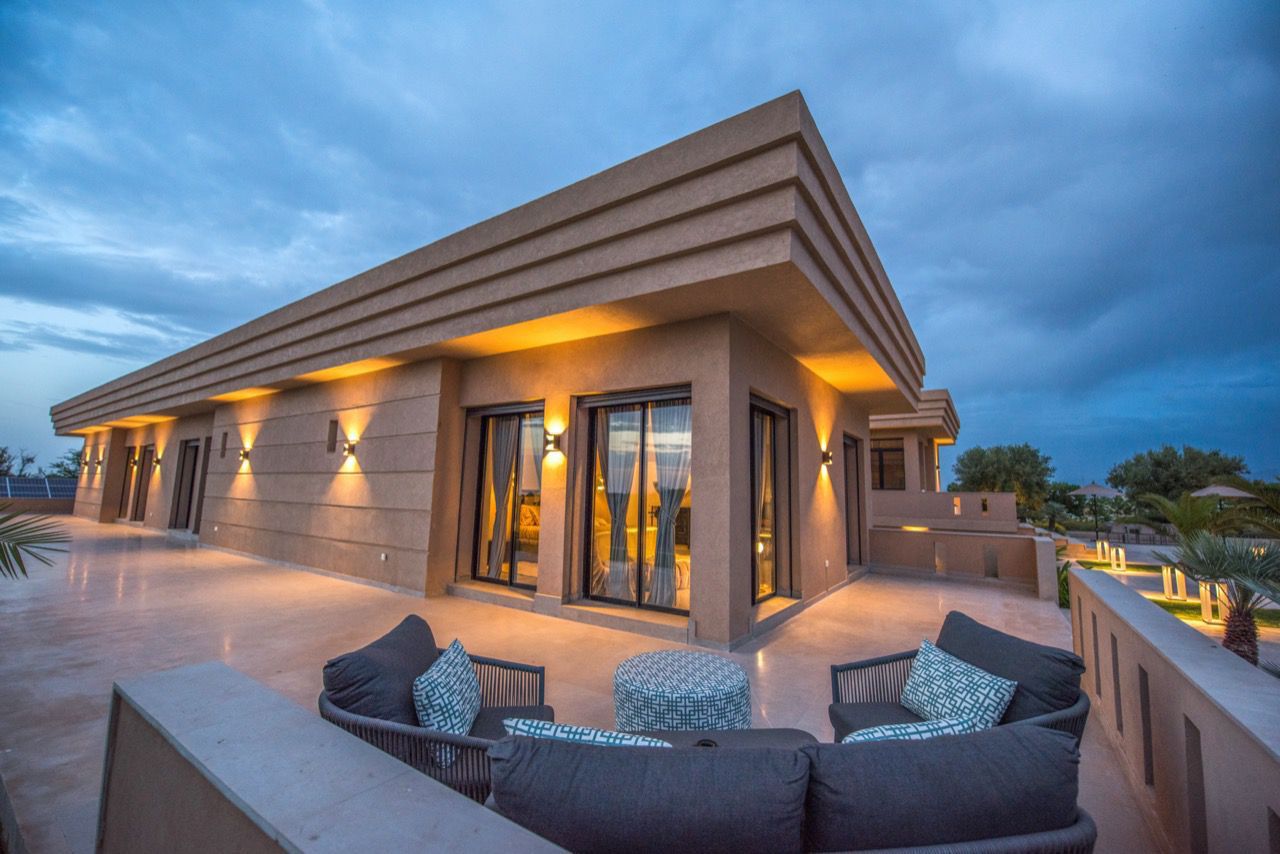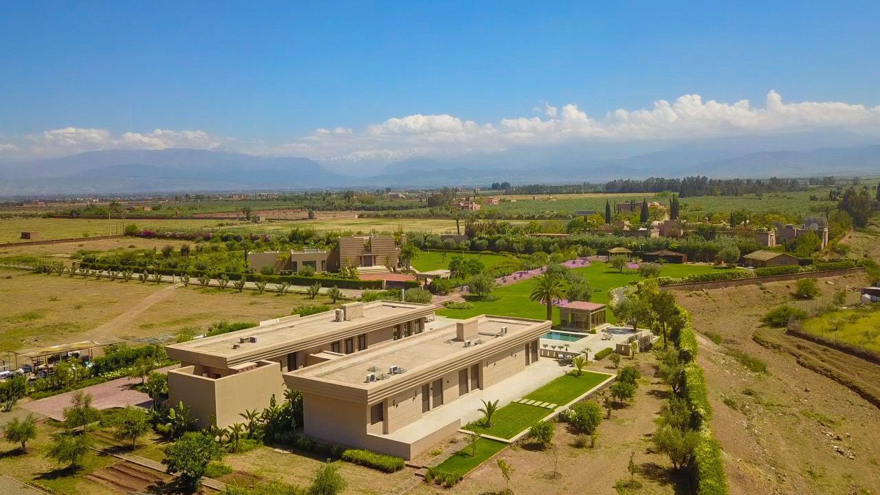 Sublime Villa dotée d’une architecture exceptionnelle, d’une finition, tant par la qualité de la construction que par le choix des matériaux; elle développe 750m2 construits sur un terrain de plus d’un hectare et dispose d’une vue panoramique sur l’Atlas.
