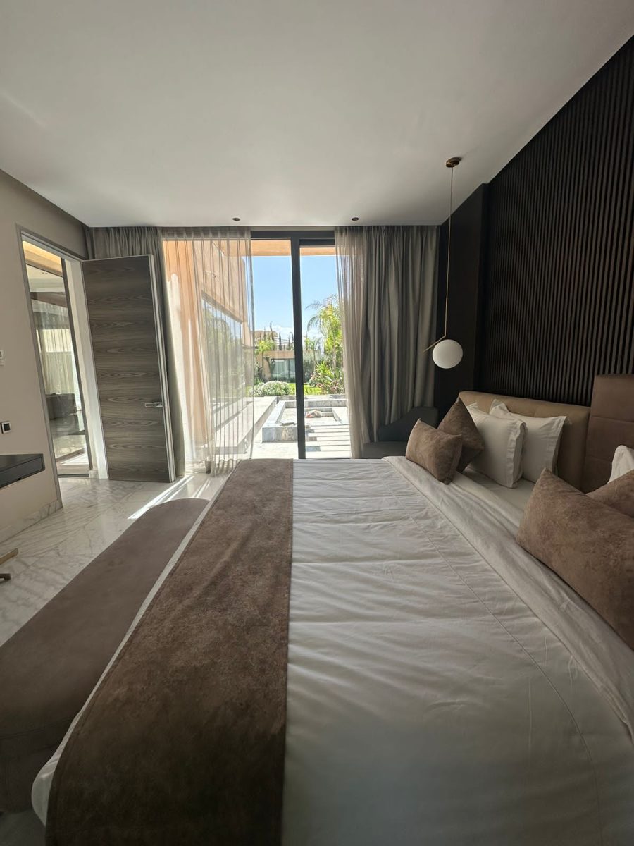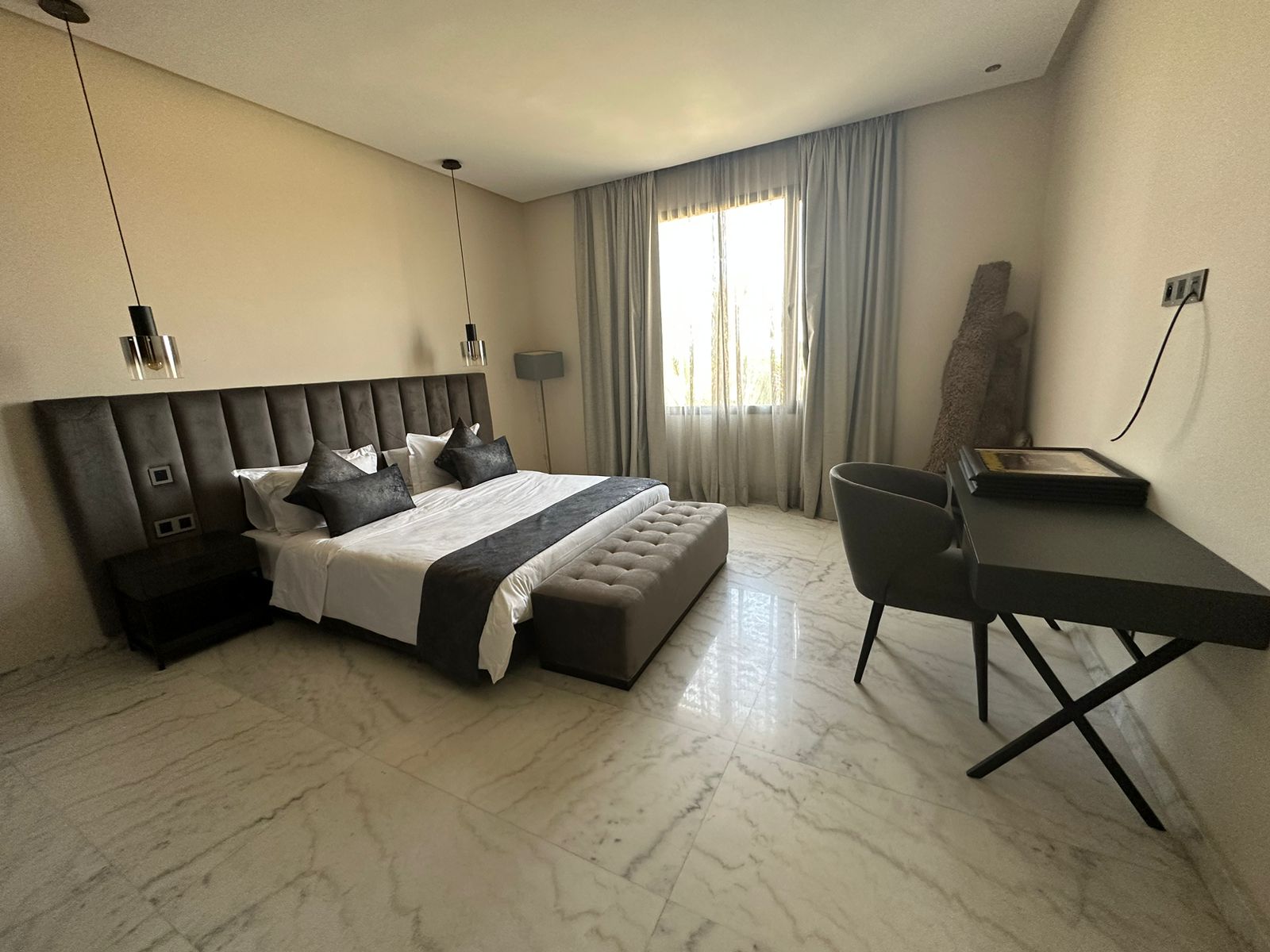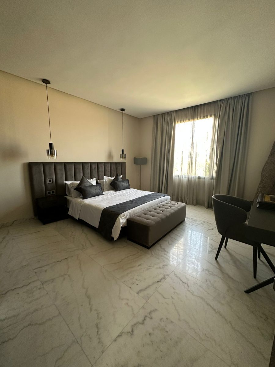 Ab Development Marrakech vous propose à la vente cette sublime villa d’architecture située dans une résidence sécurisé à seulement 15 min du centre ville de Marrakech sur un terrain de 1300 m2 construite sur 400 m2 habitable dont 80 m2 pavillon indépendant