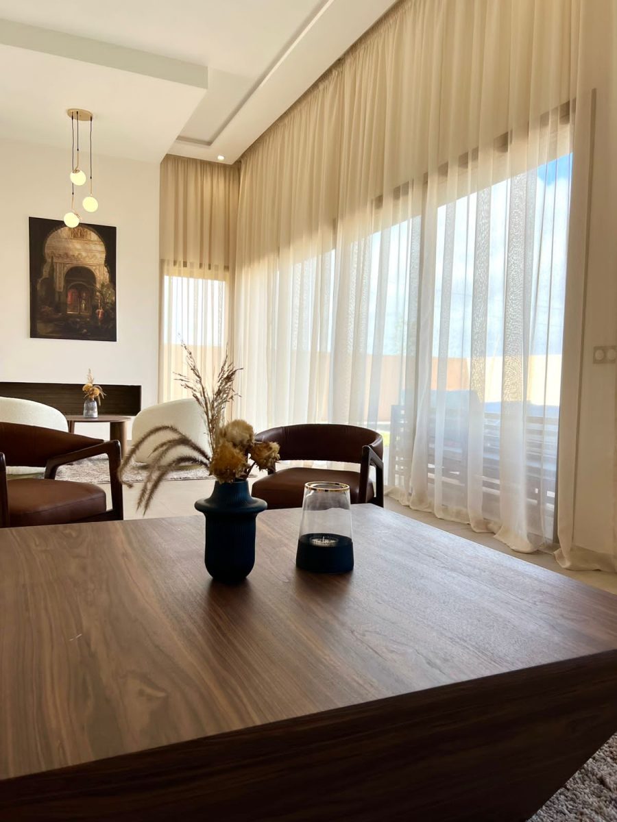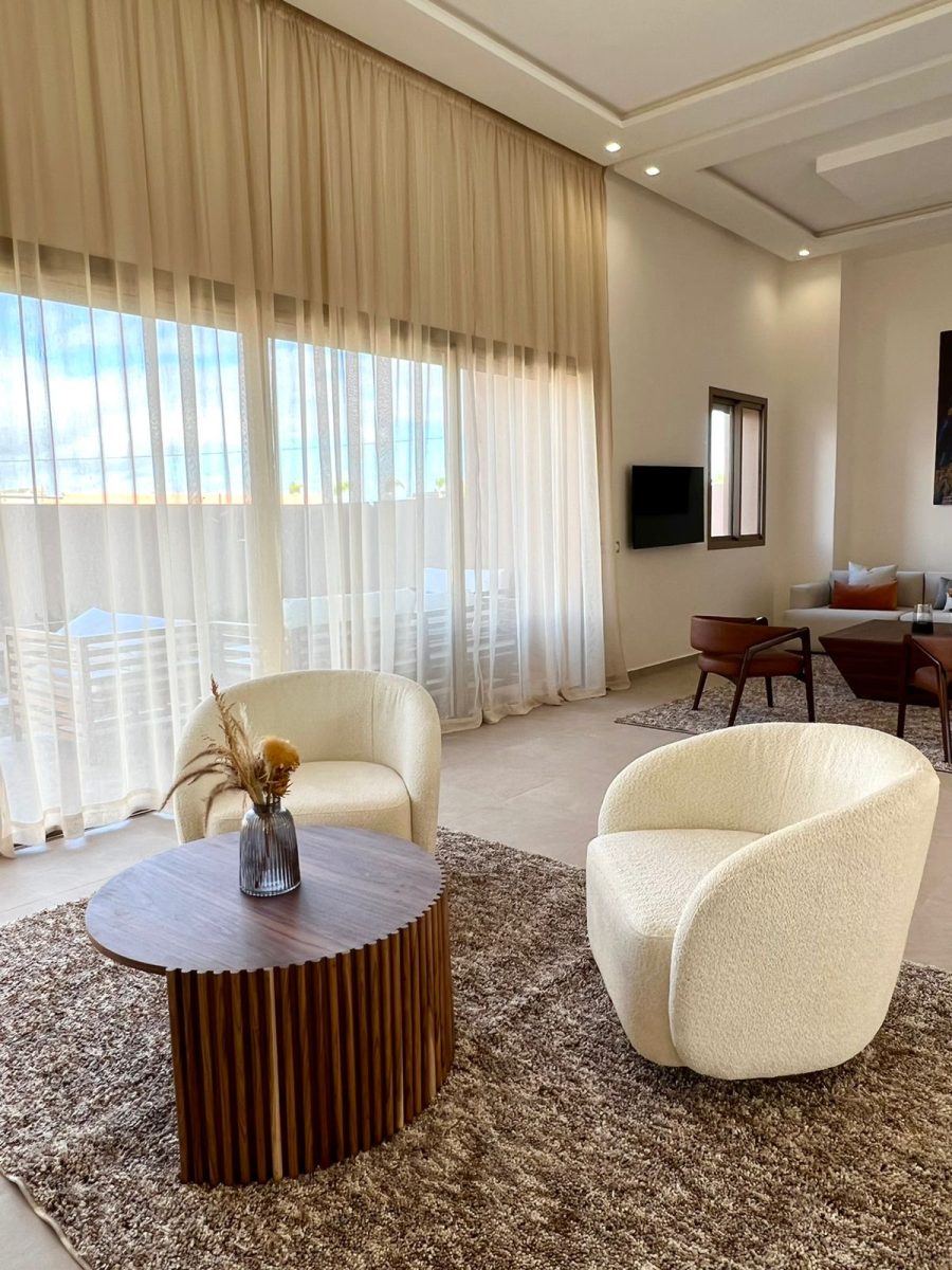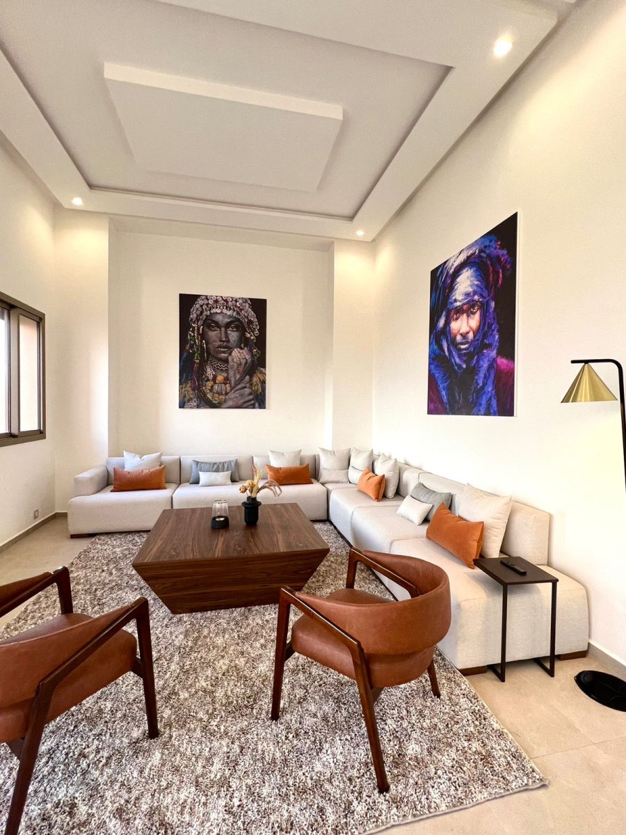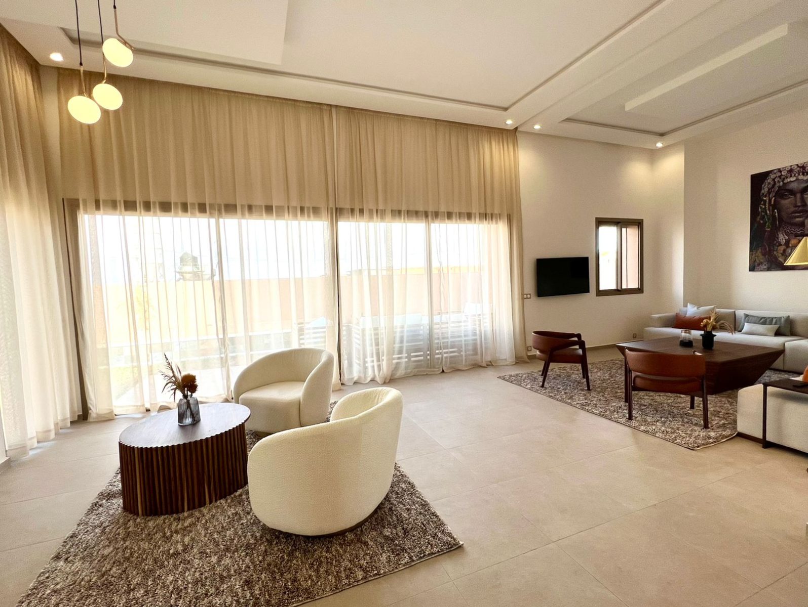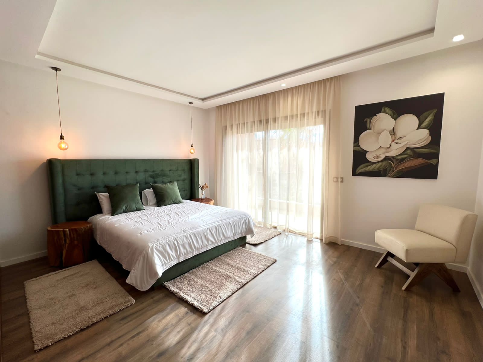 La villa est situé à 10 minutes du centre de Marrakech. Elle est dotée également d’un petit jardin ainsi qu’une piscine privée.