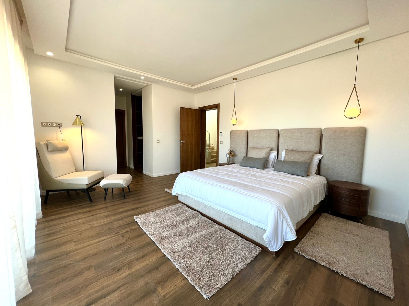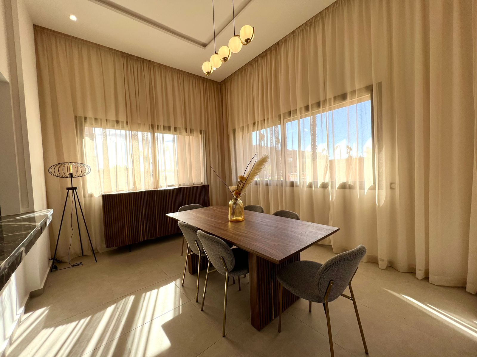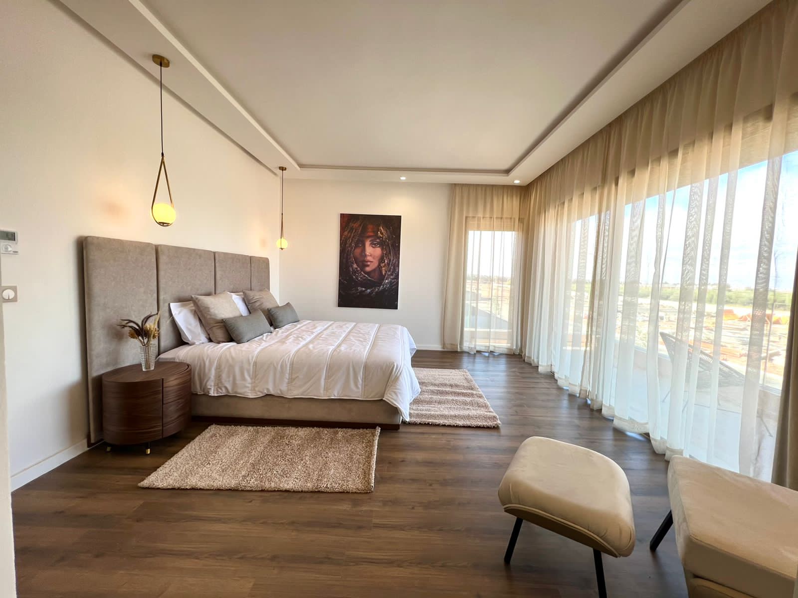 La Villa Verte neuve d’une superficie de 300 m2 est composé de 3 chambres dont une suite parentale, avec dressing, salle de bain avec baignoire, un grand salon séjour lumineux, un coin salle à manger, une cuisine entièrement équipée avec buanderie, une chambre de service et un toit terrasse aménagé.