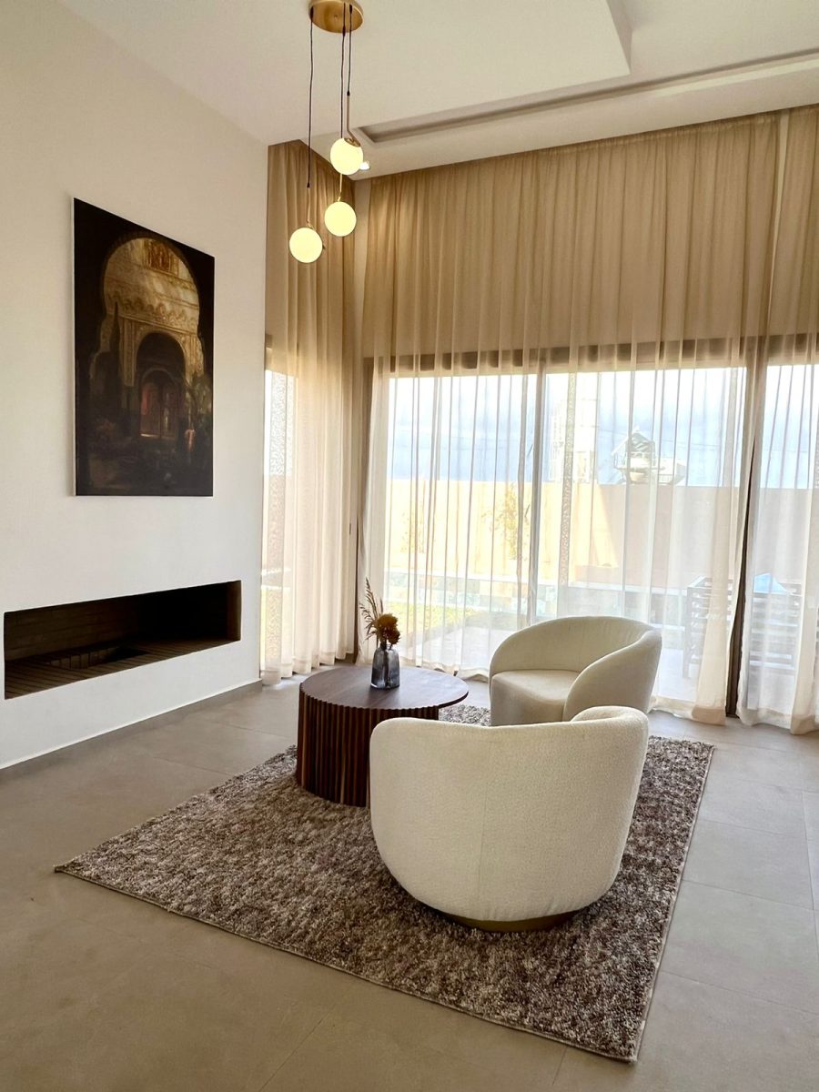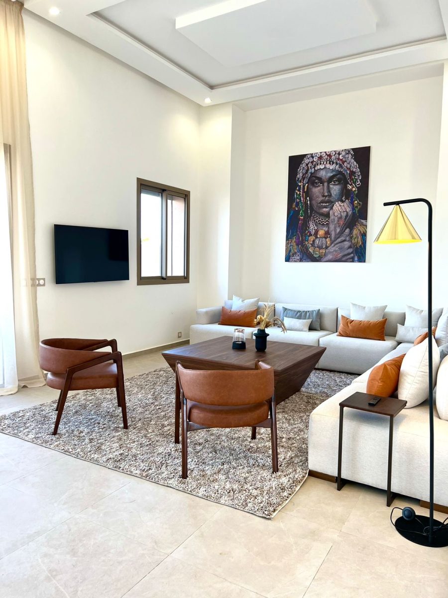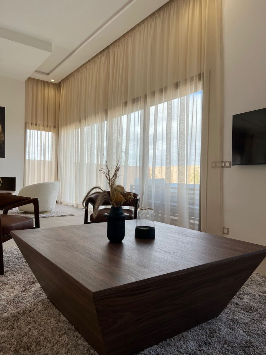 La Villa Verte neuve d’une superficie de 300 m2 est composé de 3 chambres dont une suite parentale, avec dressing, salle de bain avec baignoire, un grand salon séjour lumineux, un coin salle à manger, une cuisine entièrement équipée avec buanderie, une chambre de service et un toit terrasse aménagé.
