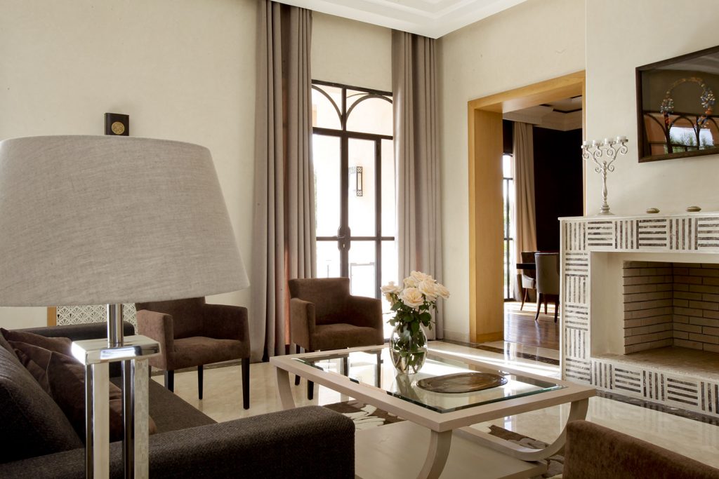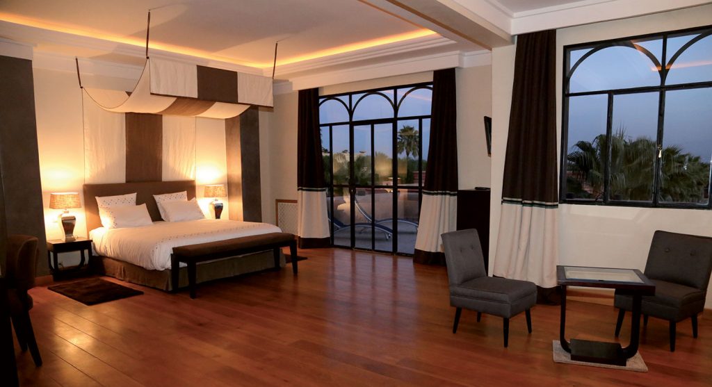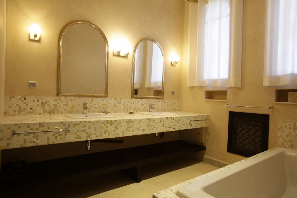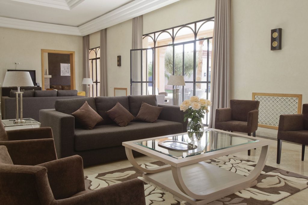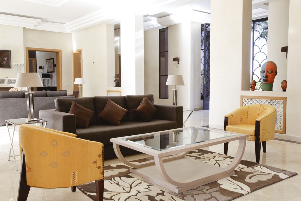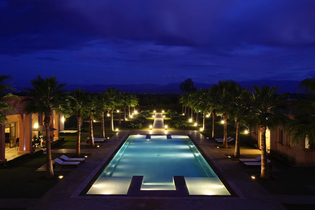 La villa Cynthia est entourée d’un merveilleux parc avec des dizaines d’arbres anciens, qui ont trouvé refuge dans ce paradis. Dans un ensemble de 5 villas de grand luxe, à une douzaine de minutes de la sortie de Marrakech, elle est proposée en exclusivité, rien que pour vous en 6 ou 8 chambres.