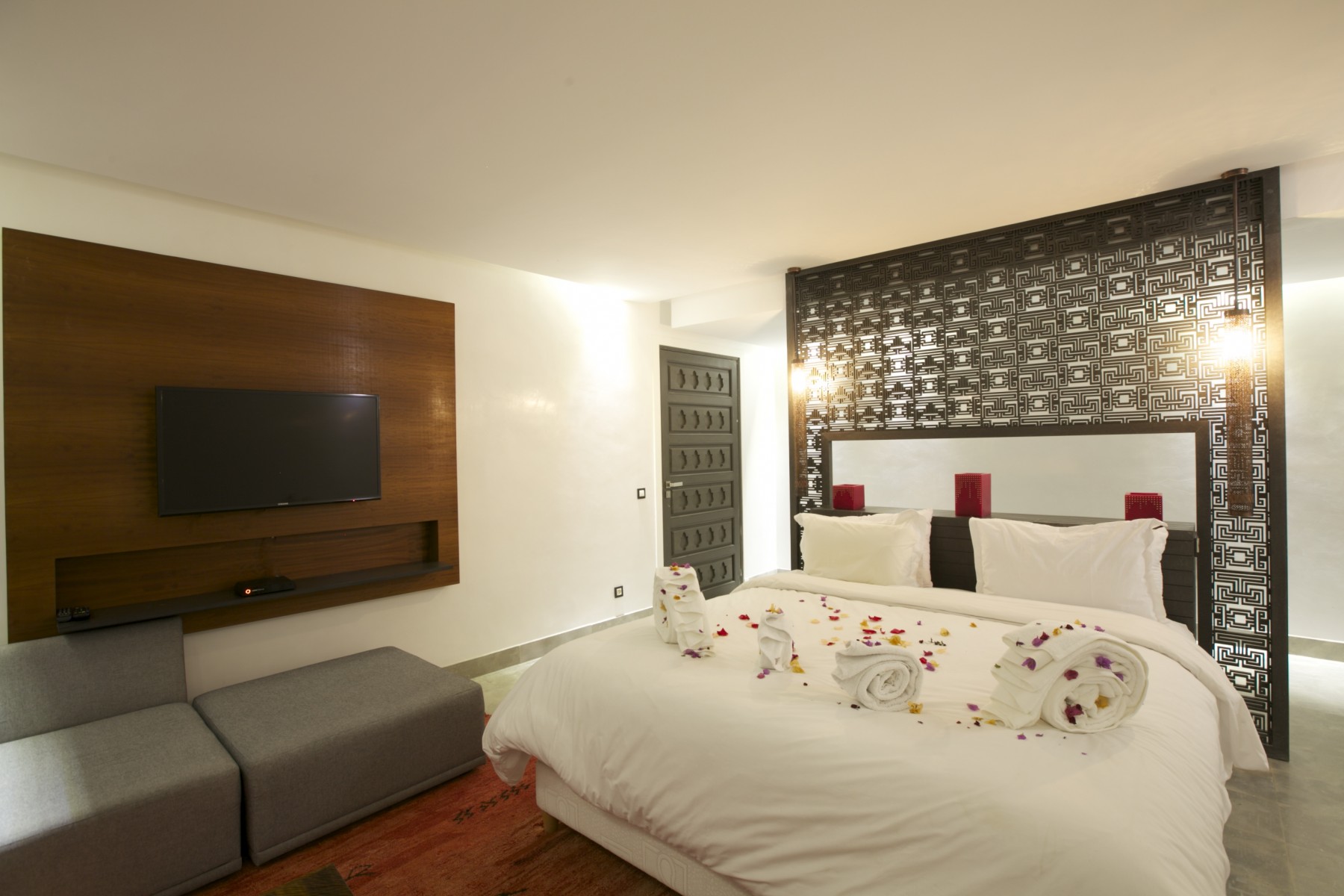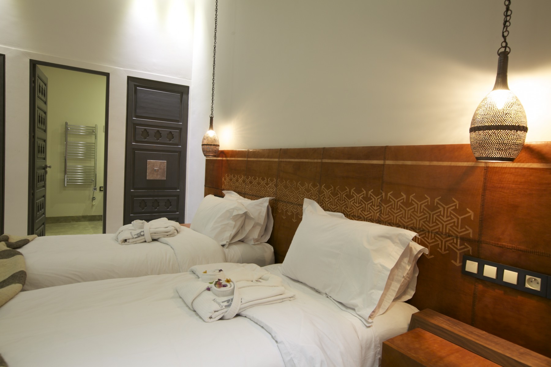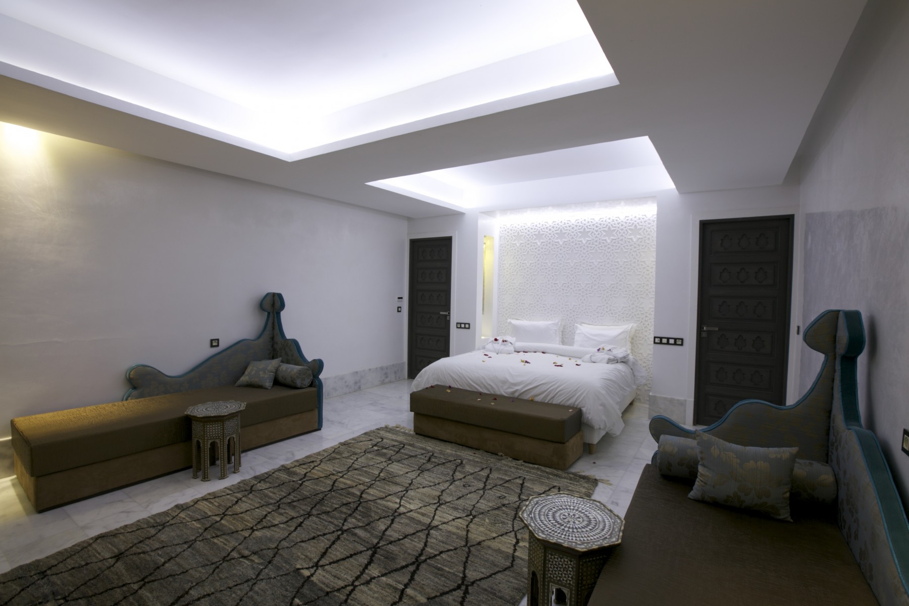 - Terrasse solarium avec vue à 360° sur la Palmeraie de Marrakech et la chaîne de l’Atlas