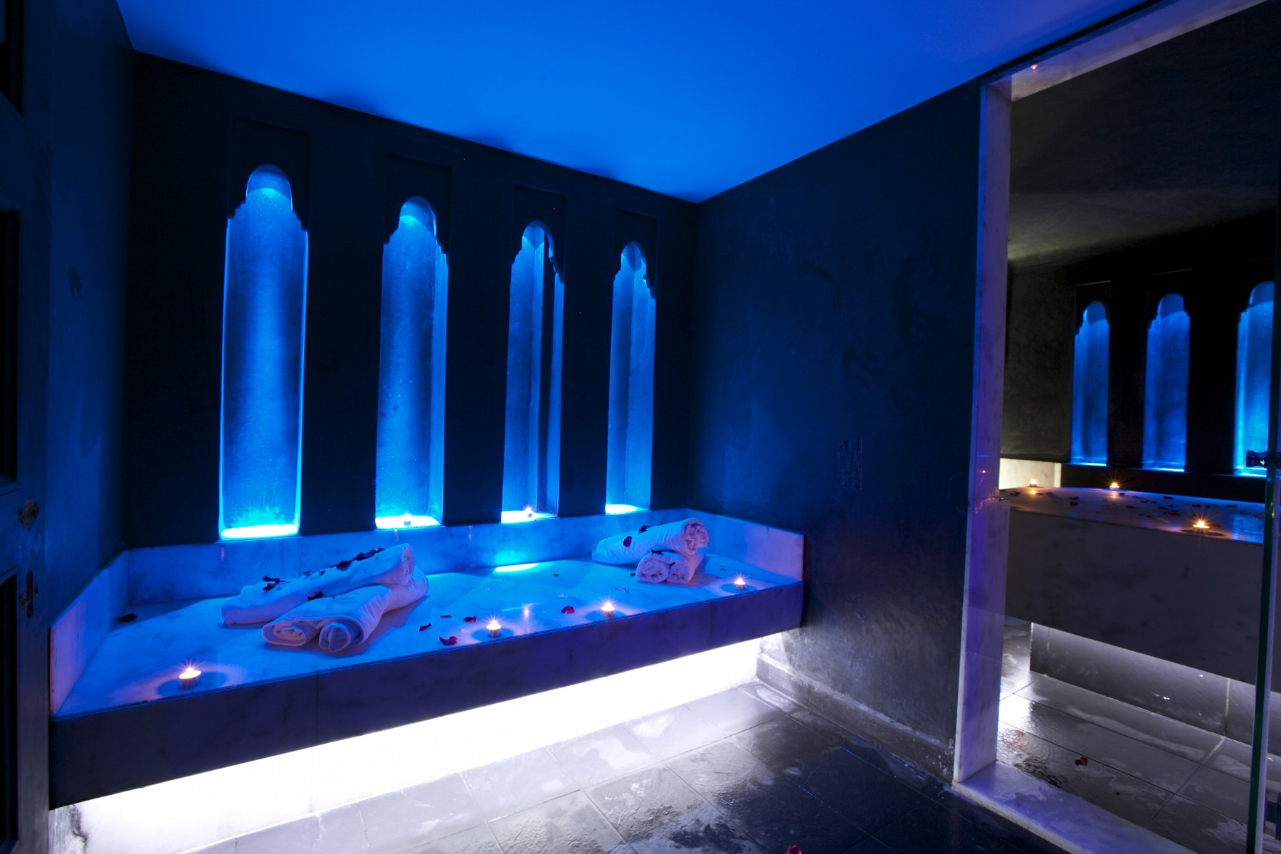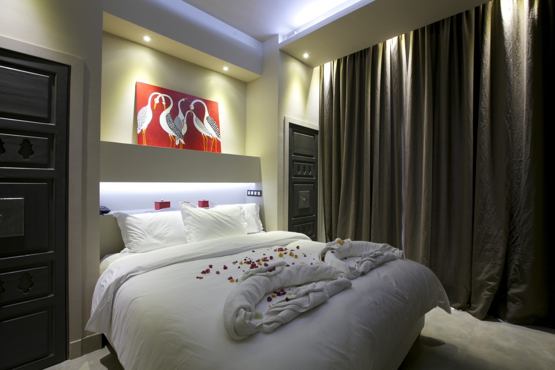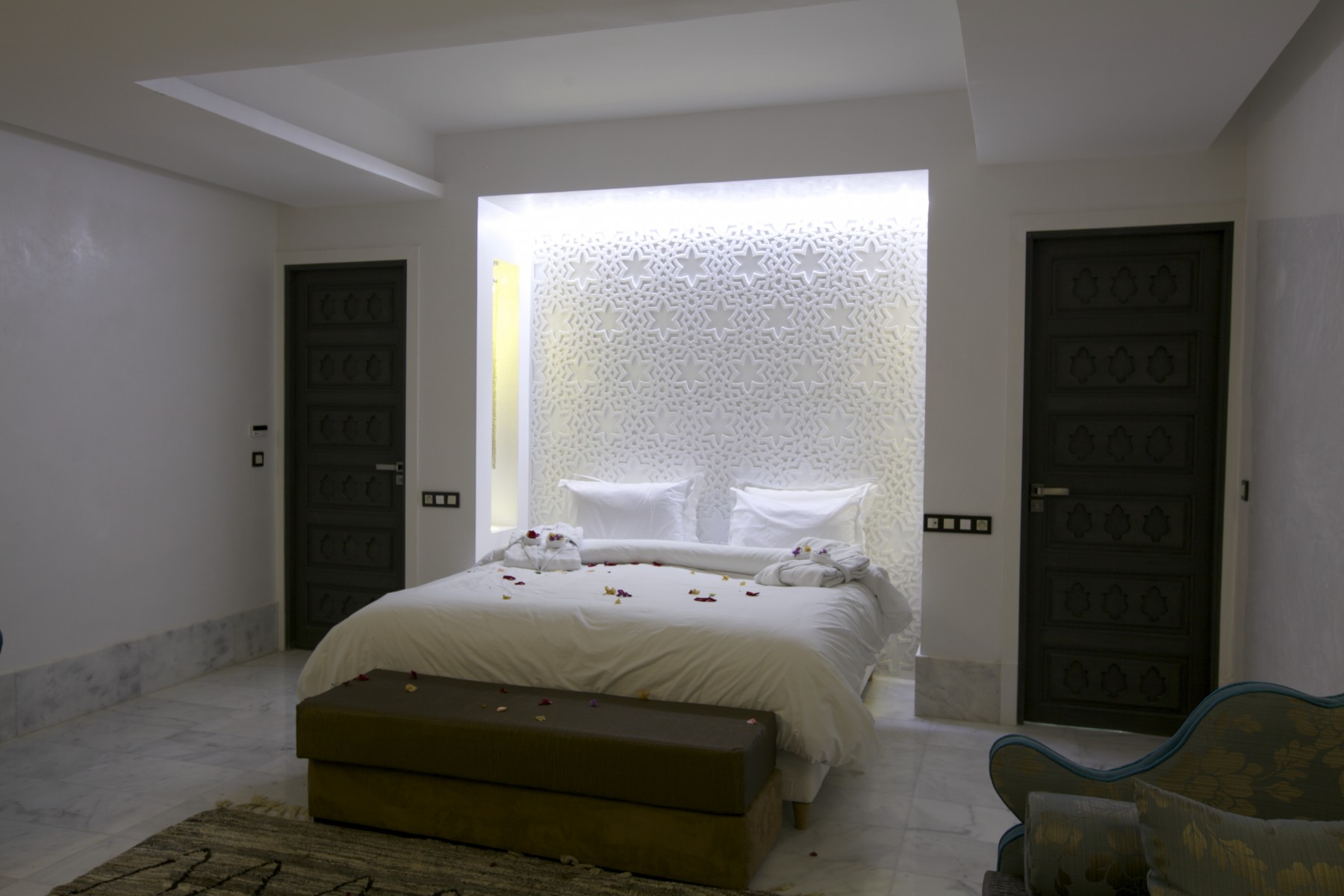 - Terrasse solarium avec vue à 360° sur la Palmeraie de Marrakech et la chaîne de l’Atlas