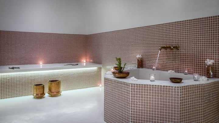 • Piscine intérieure chauffée et équipée de systèmes hydro massage et nage à contre-courant