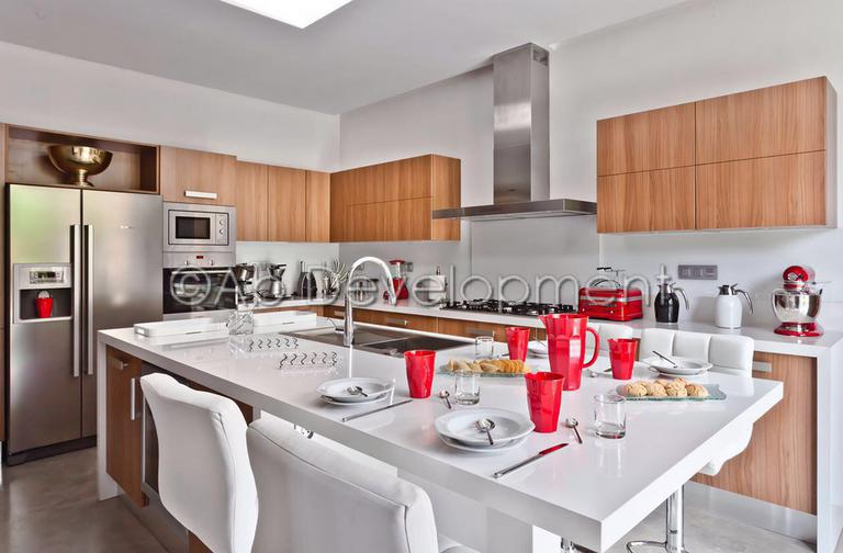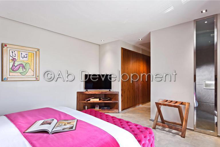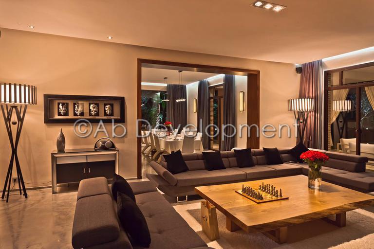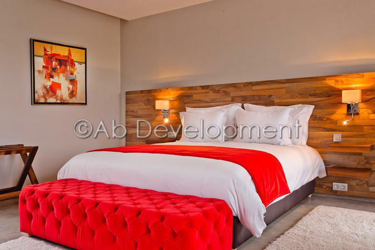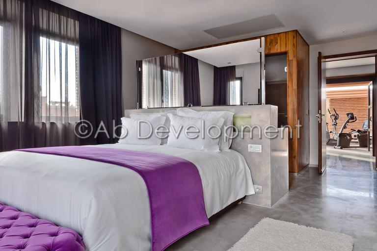 Dès l’entrée, votre regard est émerveillé par une splendide lumière qui est omniprésente dans la villa grâce à ses nombreuses baies vitrées. Le rez de chaussée se compose d’un grand salon au sein duquel trône un magnifique mobilier marocain et moderne à la fois. d’une impressionnante salle à manger pouvant accueillir 12 hôtes autour d’une imposante table en chêne massif, d’une vaste cuisine moderne entièrement équipée ainsi que de 5 superbes suites.
